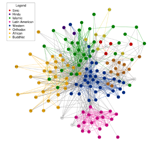 They say he global pattern of connections reflects the cultural fault lines thought to determine future conflict, clearly reflecting the civilizations mapped out by Huntington.